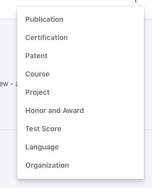Don’t share wins only on your newsfeed. After the initial buzz, they will vanish pretty quickly. You should also add the key ones to your profile for future access. Almost every section in your profile has the following option.