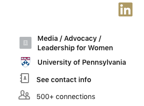 Here’s an example of a freelance content pro who has no company, but used a series of roles to describe her work right now. Therefore, her profile snapshot might imply that she’s involved in multiple endeavors like Media and Advocacy, but it could also mean that she’s looking for work.