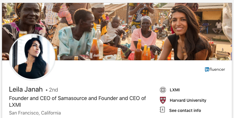 Your cover or background images help you stand out, but they can also be used to convey extra info about your work or business. Avoid an image that’s too text heavy or blatantly promotional, as that can be a put-off. The 3 images below are examples of LinkedIn profile background images. Leila Janah appears in her cover shot and showcases her work, while Kathryn Minshew chooses to share her personal goal in a subtle, understated way. Ayesha Khanna puts forth her company’s name, URL and visual effectively.