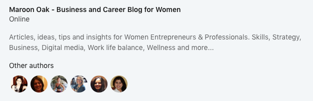 Amongst my publications, I have listed the Blog on Maroon Oak, which has over a 100 articles on entrepreneurship, professional success, career options, work life balance and more. I have also tagged other Linkedin Members who are authors on this blog and their thumbnails show up. It’s a win-win!